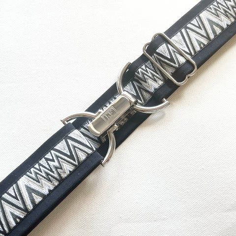 Add some funky flair to your outfit with our Zig Zag belt! This black belt features a trendy zig zag design and is 1.5" wide. Perfect for youth sizes 18" - 34", it's also adjustable for a comfortable fit. Stay stylish with this unique accessory!
